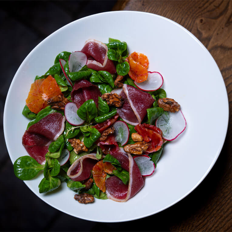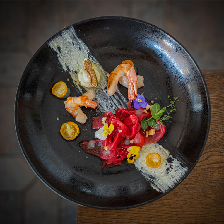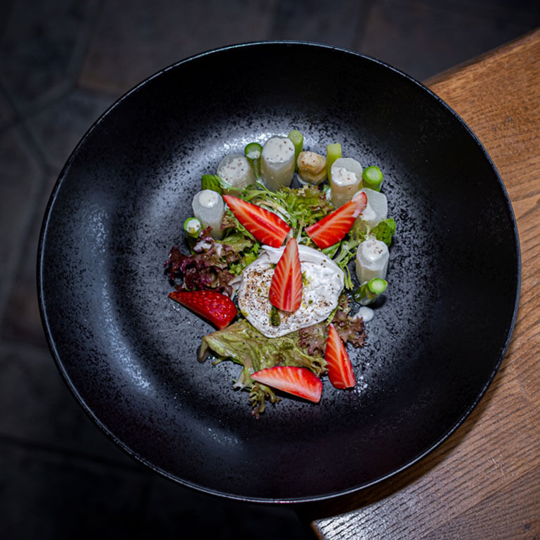 Wir kombinieren das Beste aus Wald, Feld und Fluss zu Kompositionen, die Ihre Sinne berühren. Entdecken Sie unsere aktuelle 3-Gang Menüs oder lassen Sie sich von unserem 6-Gang Atelier-Menü überraschen.